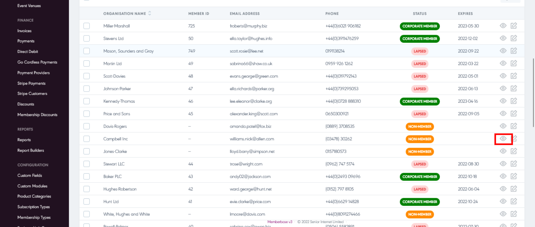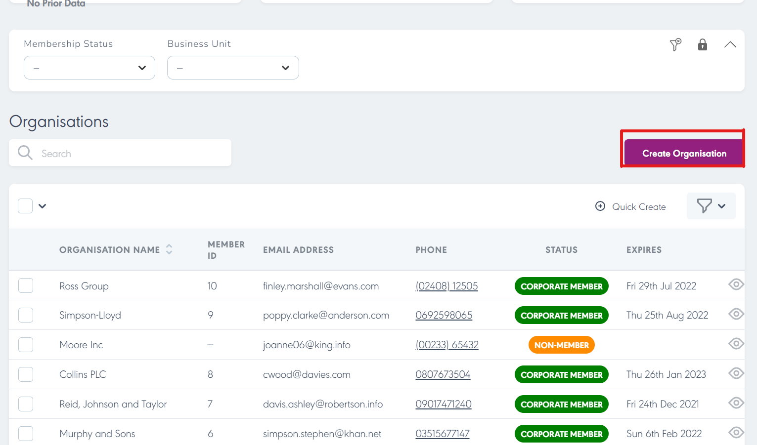 iv. Once done, you can click the "View" icon to view your new organisation: